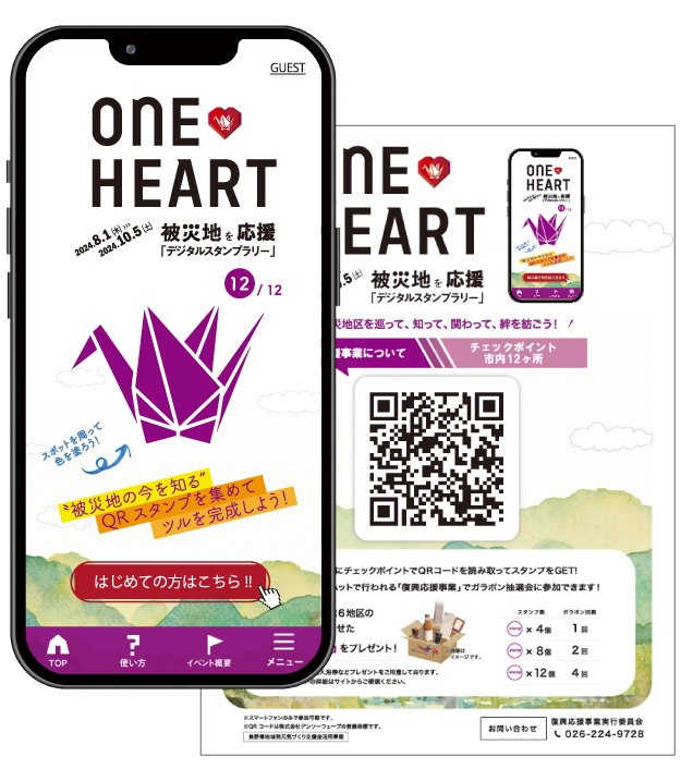 長野市様では、令和元年東日本台風災害から5年が経過し、さらなる復興に向けて、多くの方に被災地区を訪れていただき、応援してもらうことを目的として、2024年8月~10月にかけて被災地区を巡る復興応援デジタルスタンプラリーを開催し、弊社製品をご導入・ご活用いただきました。
